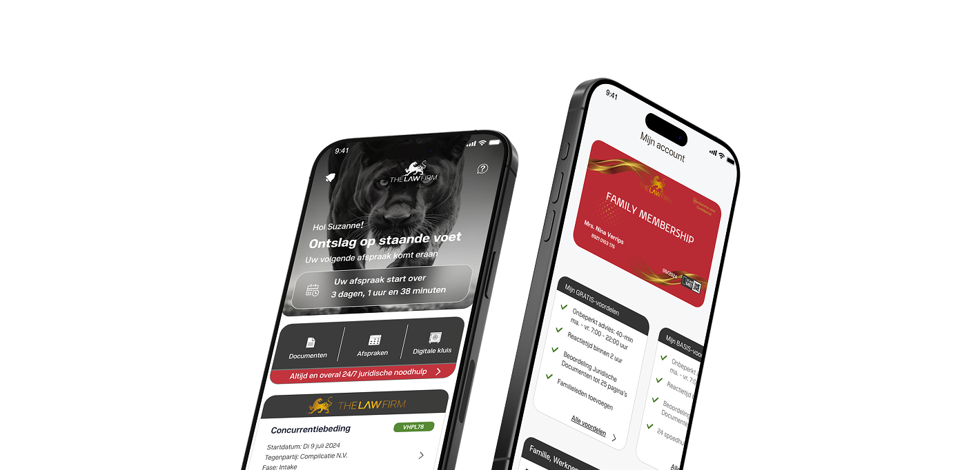 Met de The Law Firm App regelt u al uw juridische zaken op één centrale plek. U plant afspraken, verstuurt berichten, opent documenten en volgt de voortgang van uw zaak – waar en wanneer u maar wilt.