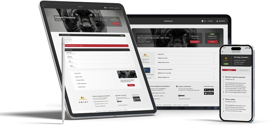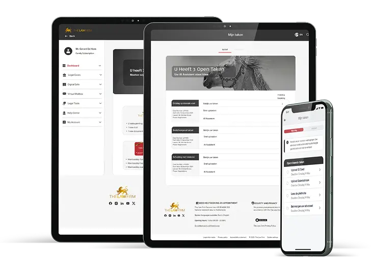 Met de The Law Firm App regelt u al uw juridische zaken op één centrale plek. U plant afspraken, verstuurt berichten, opent documenten en volgt de voortgang van uw zaak – waar en wanneer u maar wilt.